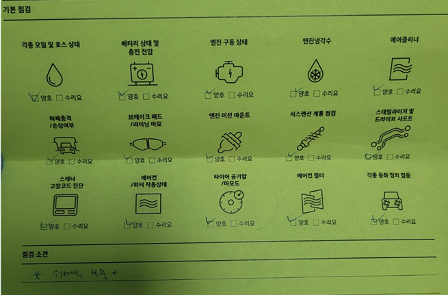 기본 점검도 잘 해주시고 이렇게 점검한 내용 체크해서 알려주시드라고요!!!